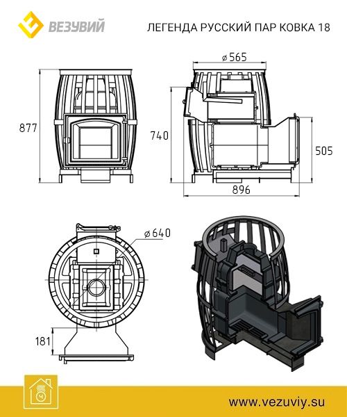 Новая линейка дровяных печей для бани ЛЕГЕНДА РУССКИЙ ПАР КОВКА 18 (270) рассчитанные на парное отделение объемом от 8 до 20 м3.
