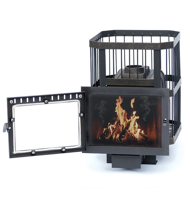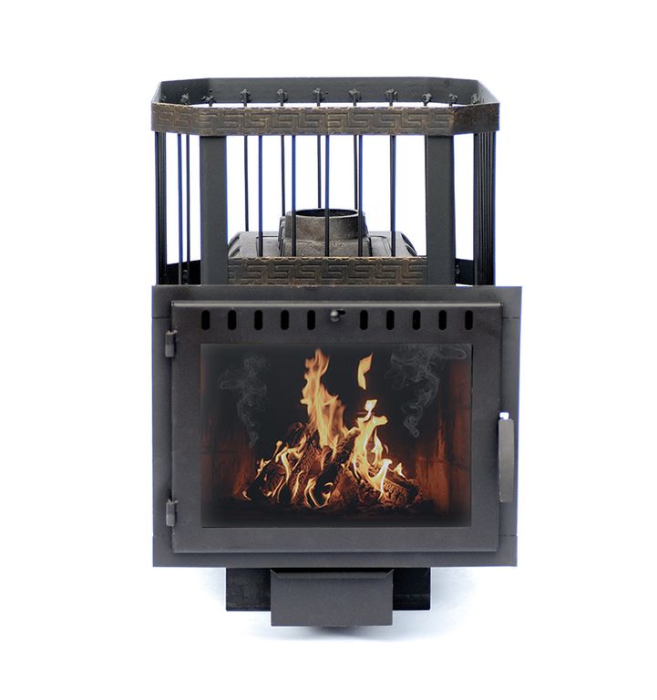 Печь банная чугунная"Сибирь-20". Панорамная дверца (сетка)