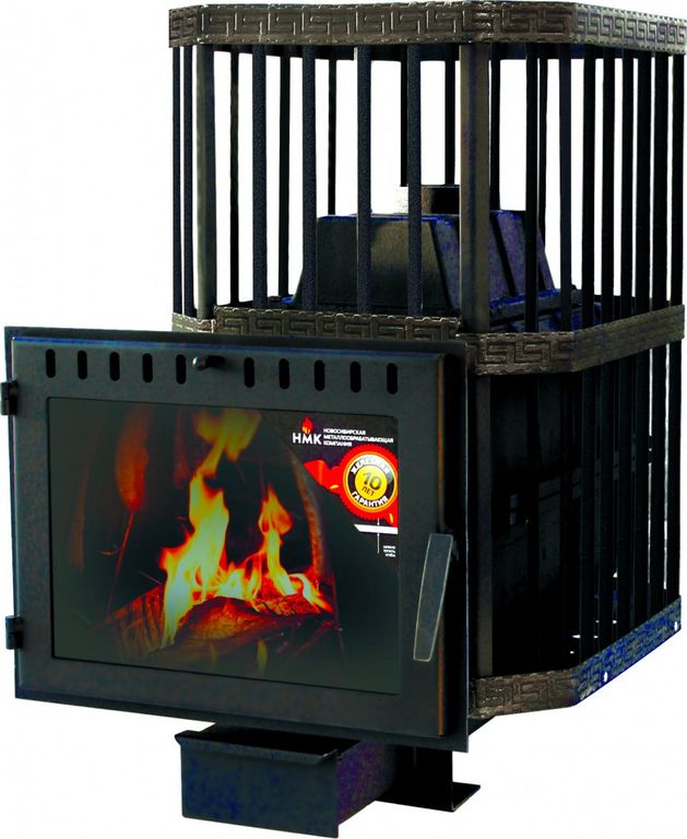 Банная печь с чугунной топкой и открытой каменкой (сетка) для парных 10-24 м2