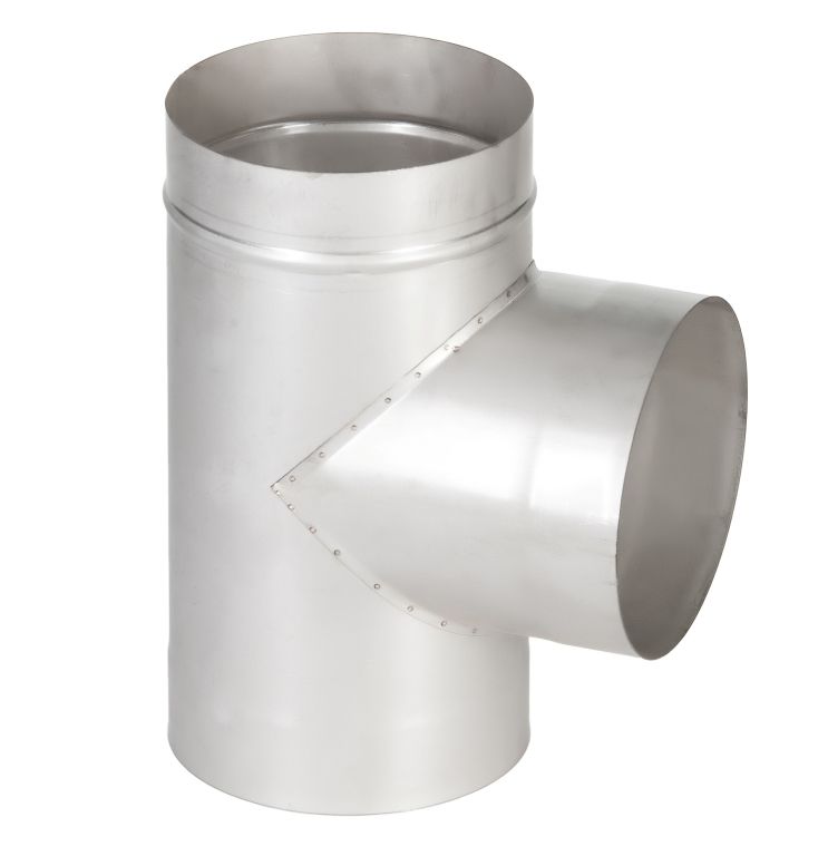 Тройник 90° – элемент, главным назначением которого является соединение дымоотвода с основным каналом дымохода с возможностью ревизии (чистки). В комплекте с заглушкой.