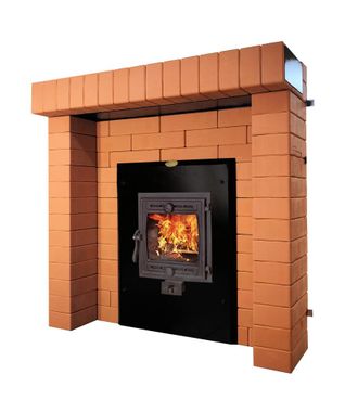 Портал является универсальным. Вырез двухсторонней металлической накладки под печь производится по месту. Подходит для 98% печей