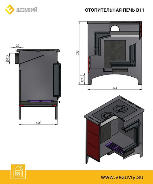 Отопительная печь «Везувий» В11 предназначена для установки в различных хозяйственных и жилых помещениях.