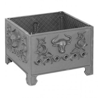 Чугунный мангал украшен барельефным рисунком быка.