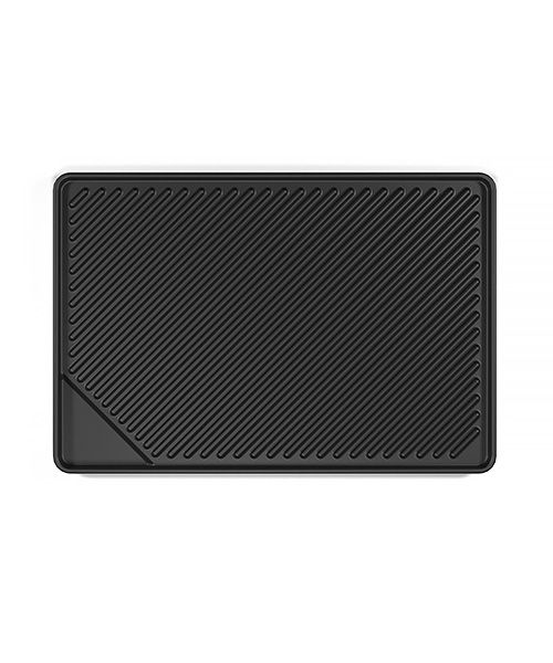 Плита изготовлена из жаропрочного чугуна. Одним из преимуществ чугунных решеток является неограниченный срок их службы. Теплопроводность чугуна позволяет равномерно прожаривать продукты, сохраняя их природную сочность.У плиты есть ножки для подачи на стол и углубленный уголок для слива масла.