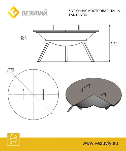 Округлая чаша классических очертаний хорошо впишется в любой ландшафт как готовый элемент дизайна. С её помощью легко организовать костровую зону в удобном для вас месте: просто перенесите чашу и расставьте вокруг неё кресла или стулья. Чаша Везувий Fantastic, округлой формы, сделана из качественного чугуна. Диаметр чаши – 736 мм, высота – 184 мм.