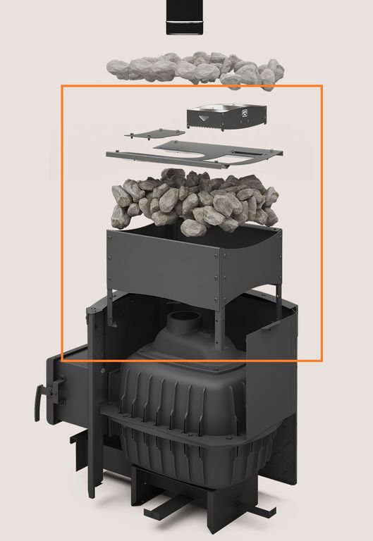 Закрытая каменка БЫЛИНА-18 представляет собой сборную стальную корпусную конструкцию для наиболее эффективного прогрева теплоаккумулирующей закладки за счёт минимизации термических потерь и, как следствие, увеличения скорости нагрева и температуры закладки в банных печах «БЫЛИНА-18» и «БЫЛИНА-СЕТКА-18». Кроме того, в изделии реализована трёхзонная подача воды, которая позволяет добиться равномерного распределения воды по всей площади закладки.