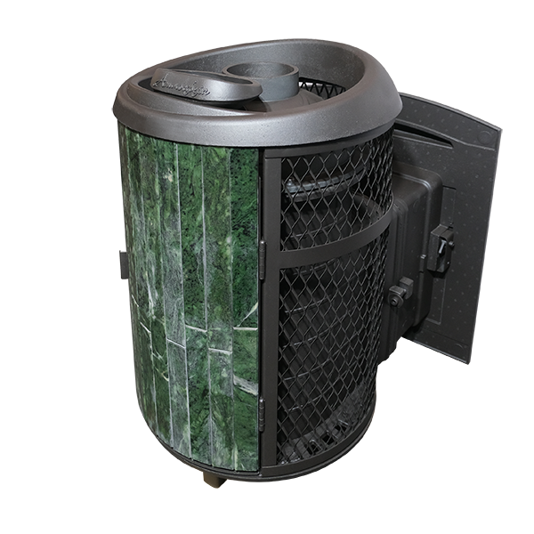 Банная печь с чугунной топкой для парной 18-25 мз и комбинированной облицовкой.