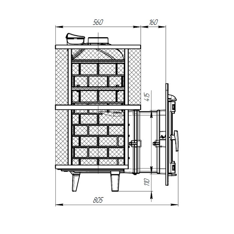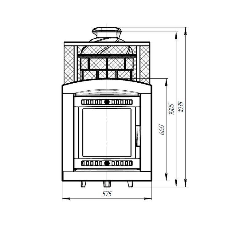 Банная печь с чугунной топкой (ЧХ-1) для парной 18-32 м3 и встроенной закрытой каменкой.