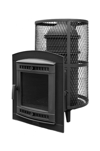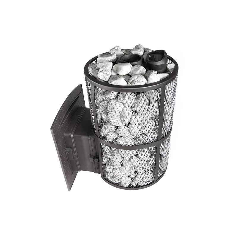 Модель с увеличенной каменкой и повышенной производительностью. Кожух печи изготовлен в виде сетки из нержавеющей стали и полностью заполняется природными камнями, обеспечивая высокую динамику нагрева парильного помещения.