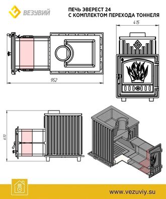 Удлинитель тоннеля для чугунной печи Везувий Эверест изготовлен из жаропрочного чугуна . Устанавливается между рамкой двери печи и штатным участком тоннеля. Соединительные заходы глубиной 10 миллиметров (по системе «четверть») предназначены для соединения удлинителя и штатного тоннеля между собой. Удлинитель по периметру фиксируется на термостойкий герметик и закрепляется при помощи удлинённых резьбовых шпилек.