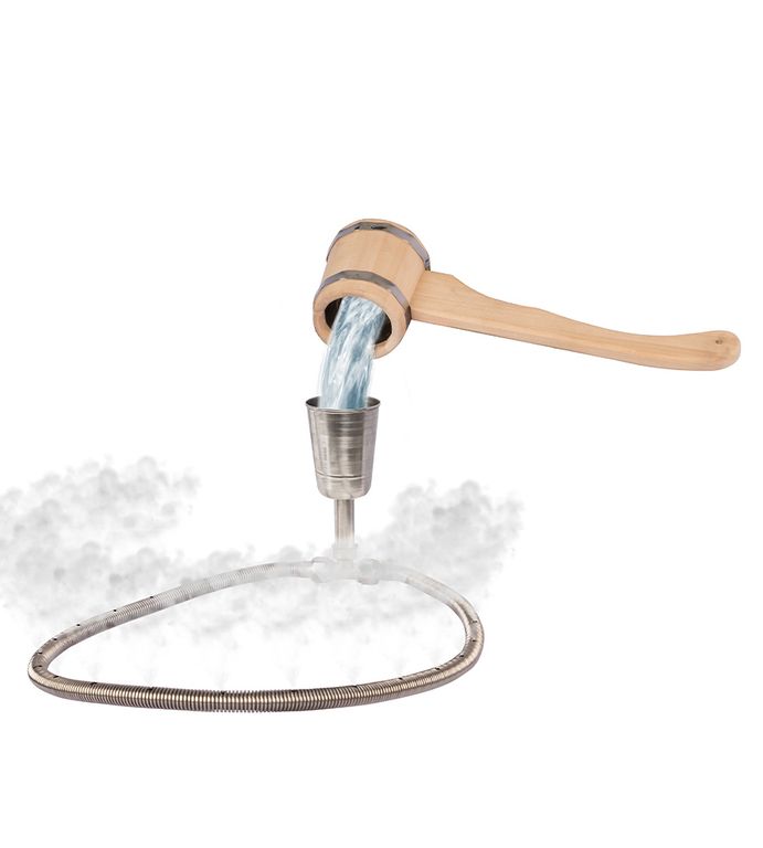 Вода в виде капель попадает на камни через отверстия, сделанные в трубке устройства. Небольшие капли воды испаряются практически моментально, за доли секунды превращаясь в пар.