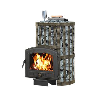 Банная печь с чугунной топкой, закрытой каменкой, с кованным конвектором-сеткой и панорамной дверкой, для парной 8-18 м3.