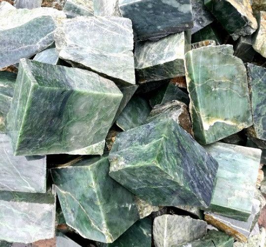 Чаще всего встречается камень благородного изумрудного цвета. Также встречаются образцы красного, белого и голубого оттенков. Цвет зависит от присутствия в камне окисей железа. По использованию нефрита в бане выделяют колотый, шлифованный и полированный нефрит. Полированный нефрит дороже и обычно используется для украшения самого верха каменки.