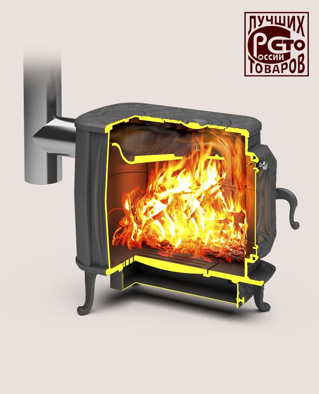 предназначена для отопления помещений общим объёмом до 200 м³. В качестве топлива используются дрова длиной до 54 см или древесные топливные брикеты.