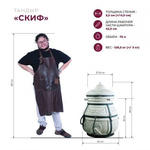 Есть вещи, которые могут служить вечно и передаваться в семье из поколения в поколение. К таковым относится тандыр Скиф, который обладает средними размерами, стандартной формой и комплектом необходимых инструментов. Благодаря металлическому каркасу с коваными ручками, его можно легко переносить с места на место.