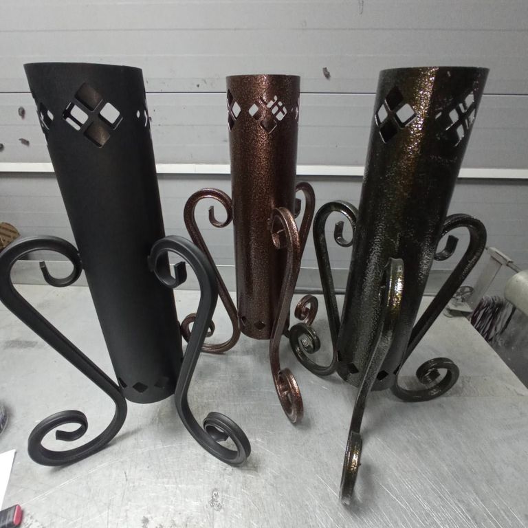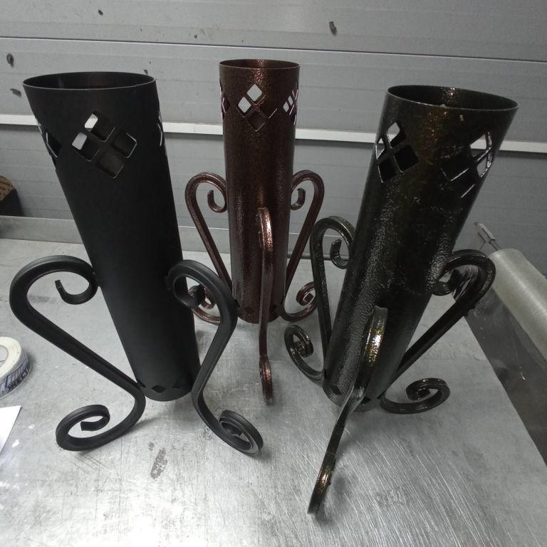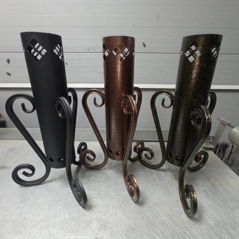 Изготовлен из черной стали с элементами ковки и покрашен специальной атмосферостойкой порошковой краской.