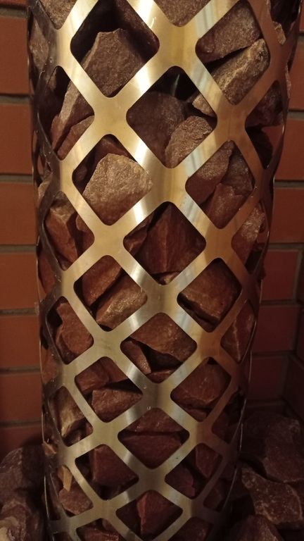 На фото пример установки сетки с уложенным внутрь малиновым кварцитом.