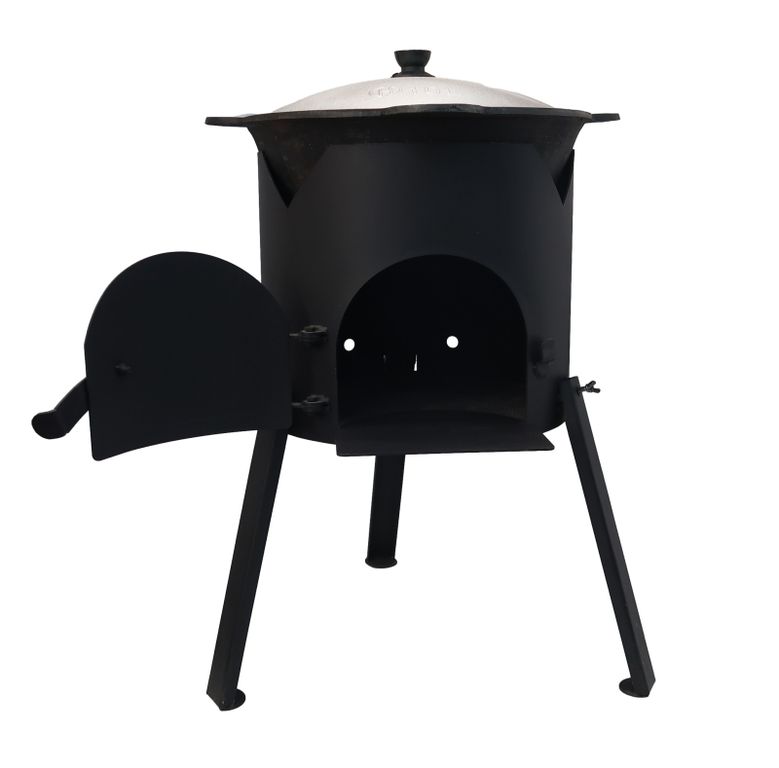 Благодаря своим компактным размерам и малому весу удобна для перевозки на природу. Казан, максимально утопленный в нашу печь, имеет безупречный прогрев стенок, что очень важно для качественного приготовления блюд.