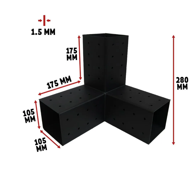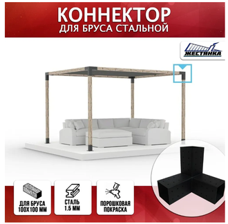 Коннектор тройной № 3 позволяет соединить между собой три бруса размером 100 на 100 мм под углом 90 градусов.