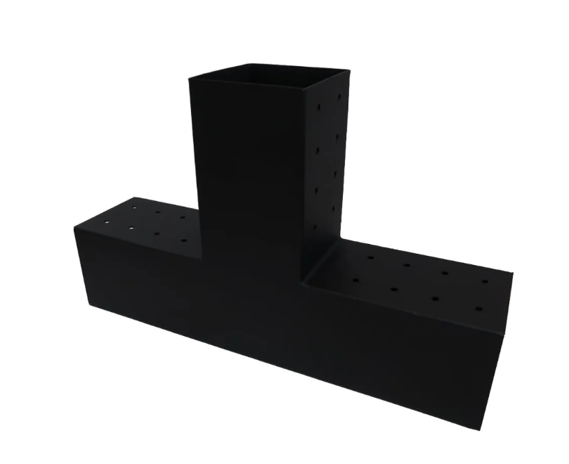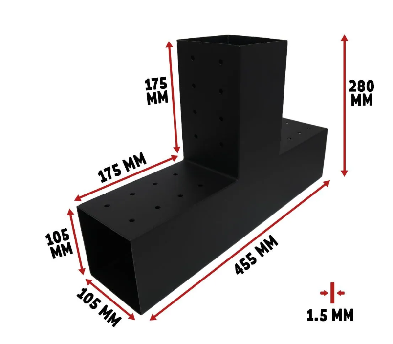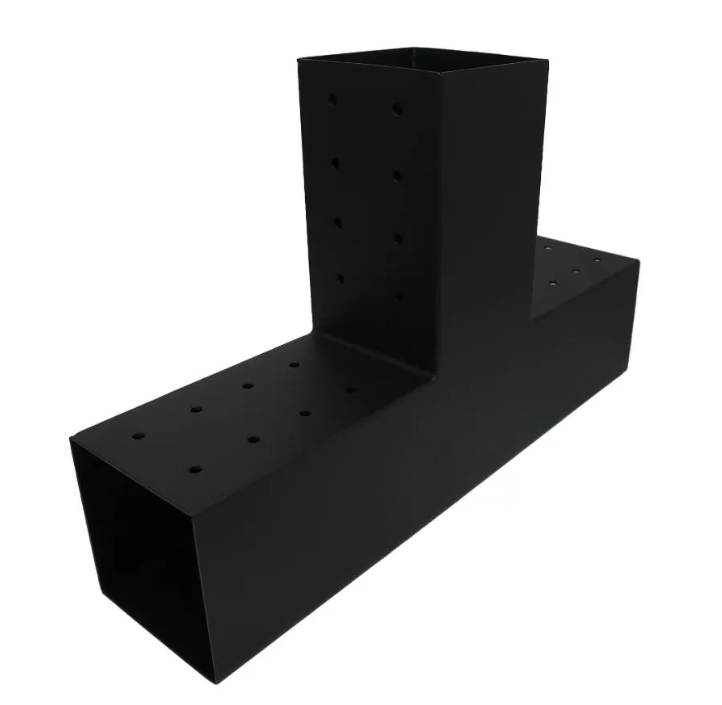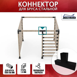Коннектор тройной позволяет соединить между собой пять брусьев размером 100 на 100 мм под углом 90 градусов.
