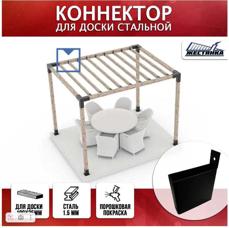 Коннектор 100х25 мм позволяет прикрепить доску к брусу