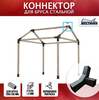 Коннектор тройной позволяет соединить между собой три бруса размером 100 на 100 мм