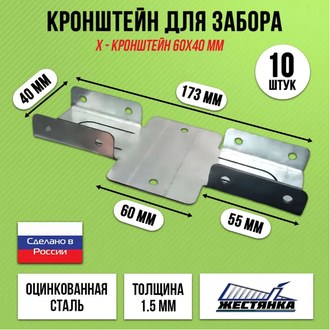 Кронштейн крепежный 40х60 мм для забора используется для монтажа забора без применения сварки. Х-кронштейн служит для оперативного и долговечного монтажа забора, с его помощью монтируются горизонтальные лаги к столбам.
