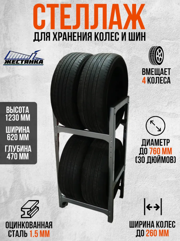 предназначен для удобного и компактного хранения одного комплекта шин или колес в сборе.