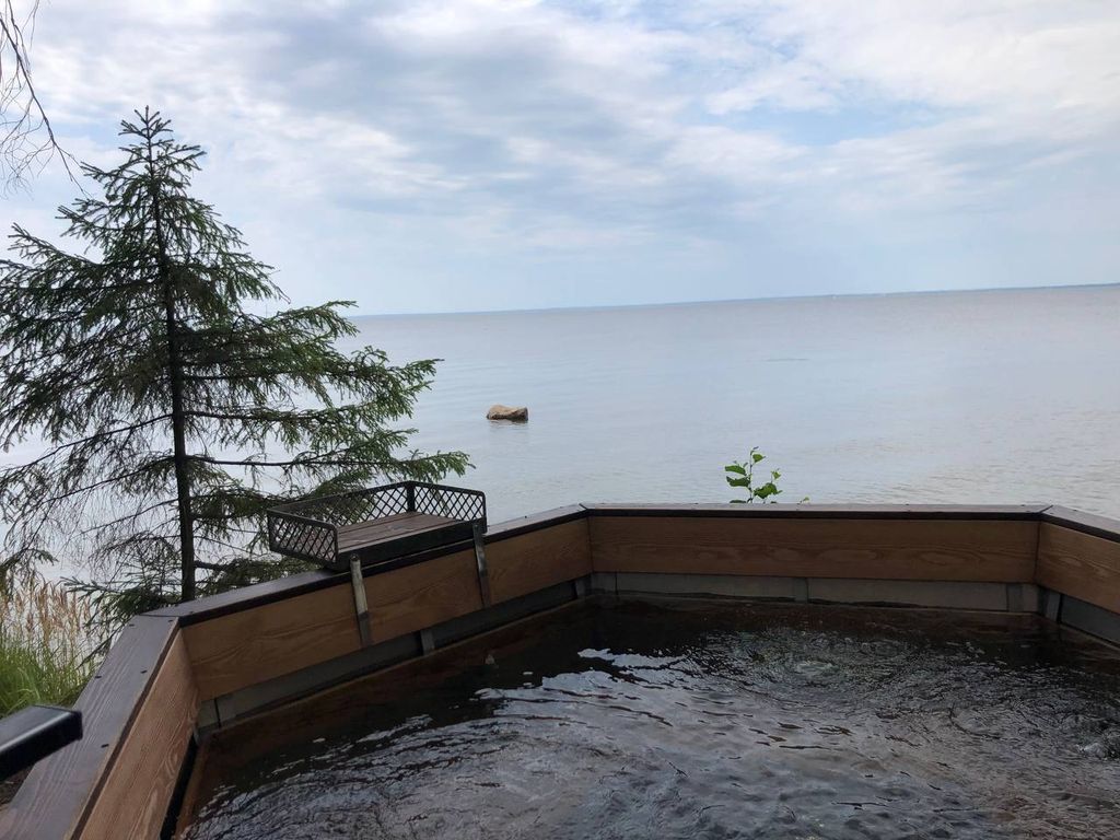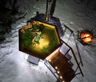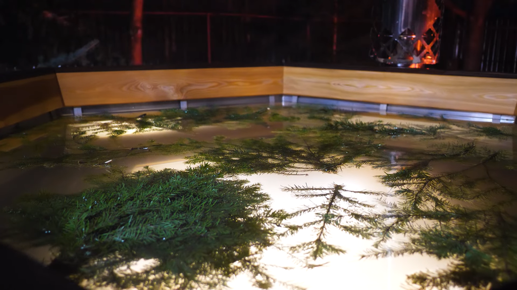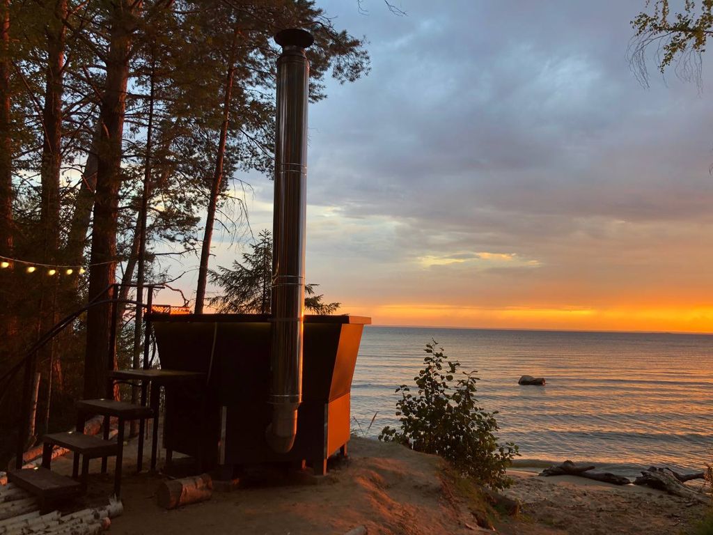 Отделка лиственницей: пол, сидушки, спинки, верхняя рамка чана.