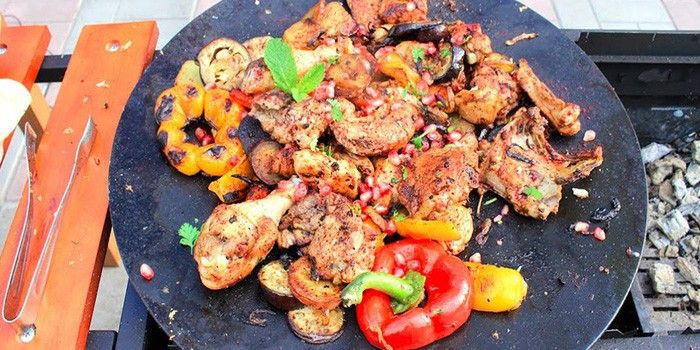 Д ля приготовления классического азербайджанского блюда лучше брать чугунную сковороду для углей, в домашнем быту чаще используют электрический или газовый садж. Для небольшой семьи подойдет средняя скорода размером 35-40 см, а, чтобы приготовить пищу для большой компании, лучше предпочесть посуду более 40 см в диаметре. Перед первой эксплуатацией чугунное изделие нужно прокалить на огне 15-20 минут, после чего на дно высыпают соль и дают сковородке остыть. После прокаленную посуду ополаскивают водой, снова прогревают и протирают подсолнечным маслом.