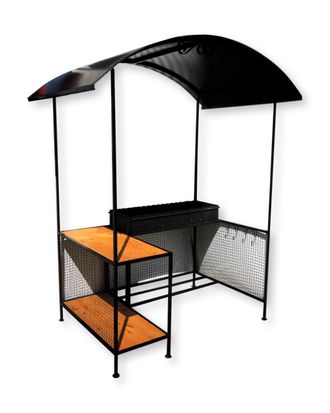 Конструкция разбирается на крышу, стойки, стол, основание мангала и жаровню.